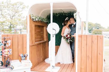 At Stop the Time Photobooths, we love to have FUN! That’s why 7 years ago we decided to venture into the “Entertainment” business. In 2021, we added Amour to our fleet of photo booths. Amour is a horse trailer from 1978 that was restored in South Georgia to be the perfect photo booth for you and your guests. This trailer has a beautiful boxwood backdrop, and it comes with cute props and accessories, to shoot amazing photos. Not only this, but you can choose from any of our famous photo booths to tag along with AMOUR. Today we can proudly say that it is the best photo booth horse trailer in the State of Georgia.